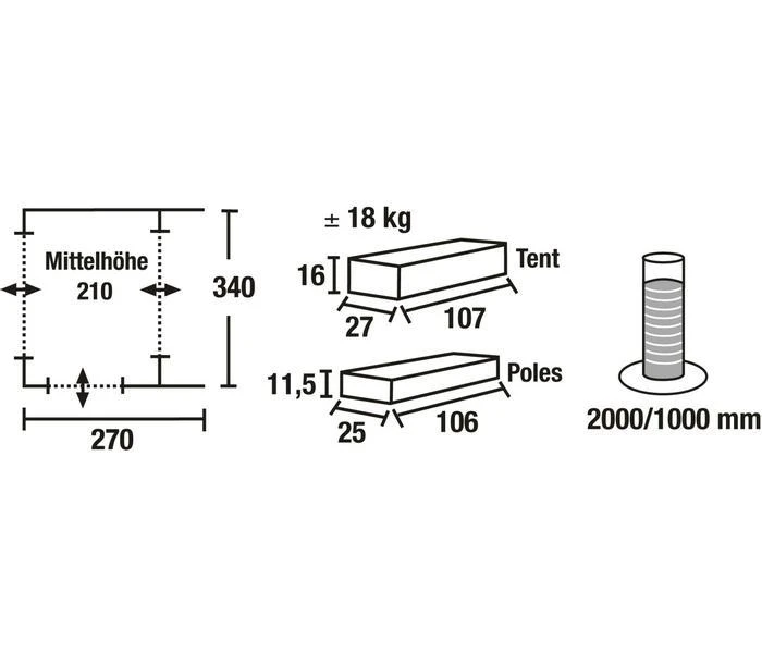 Buitentent : 100 % polyester 2000/1000 mm waterkolom